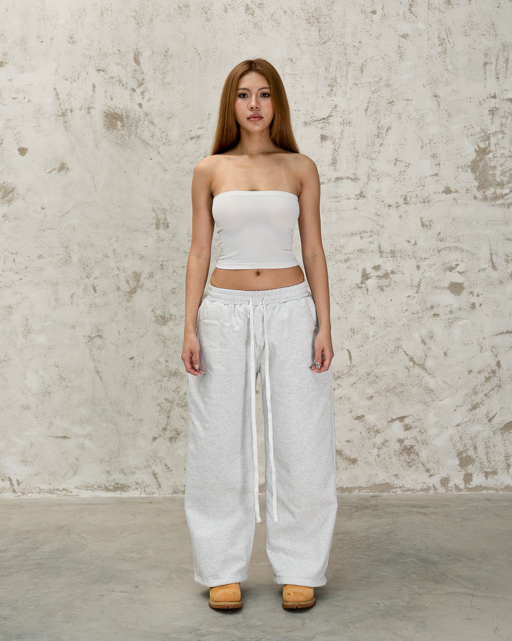ESSENTIALS STRAIGHT PANTS - HEATHER GRAY